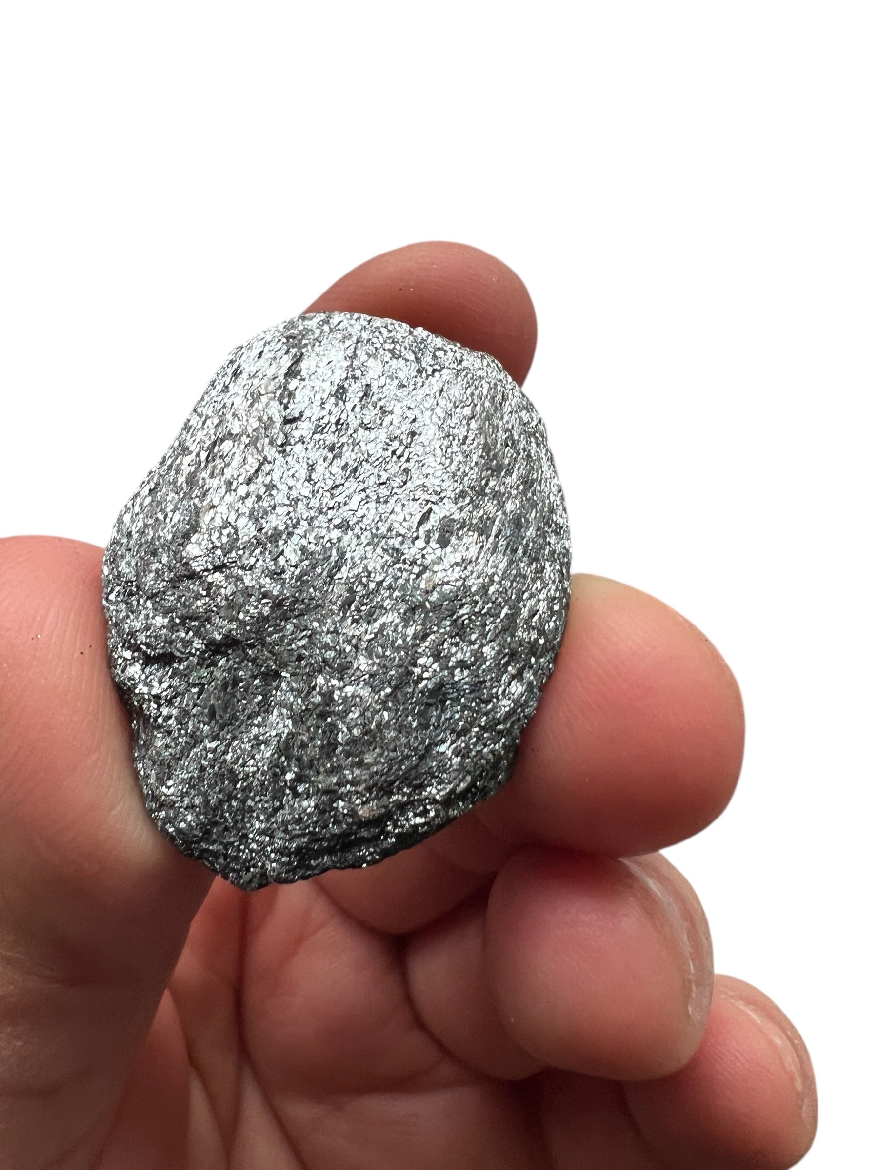 Natural Hematite with a beautiful metallic silver shine and raw, textured surface. A powerful grounding stone known for stabilizing energy and providing strong protection.